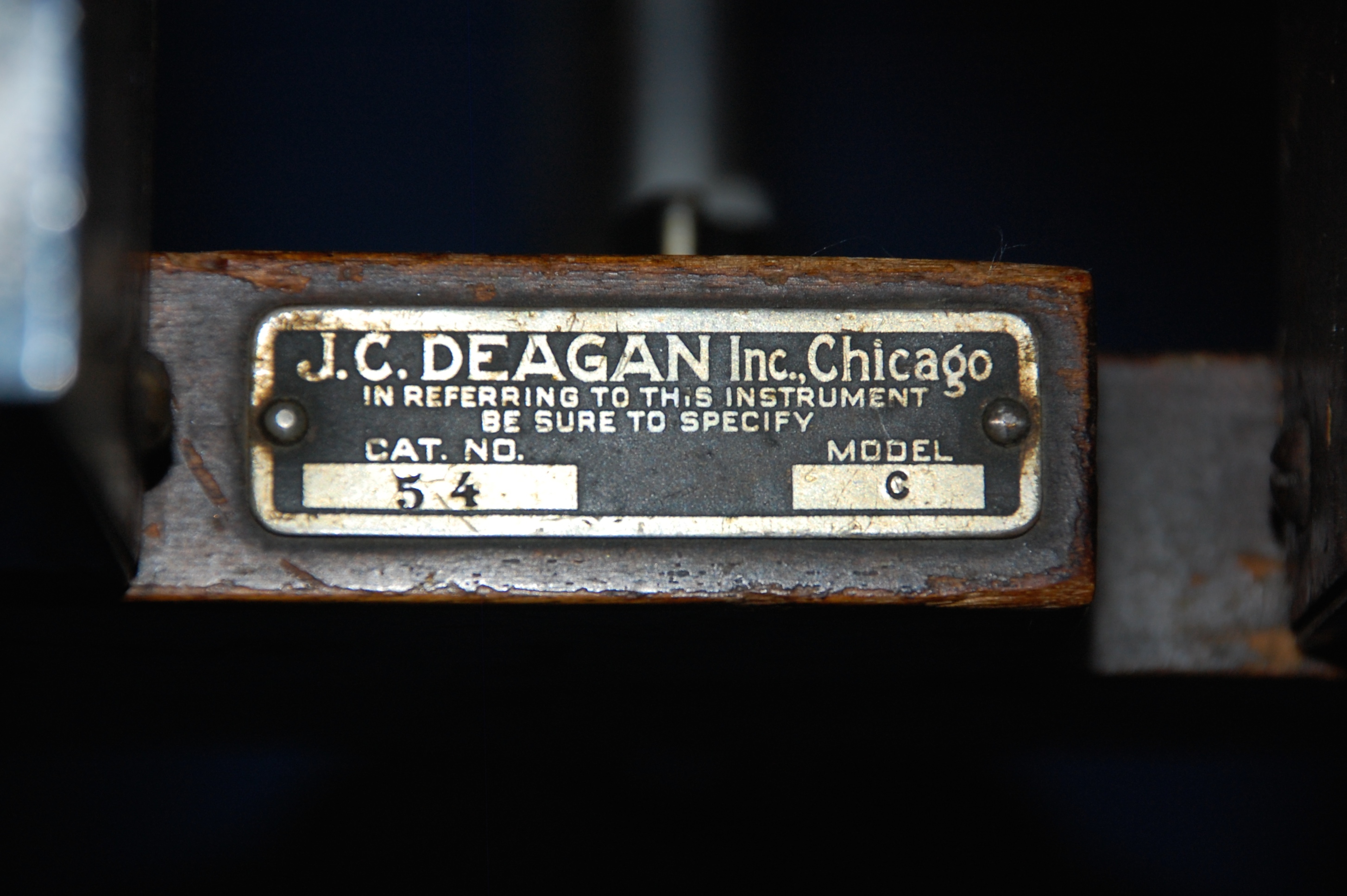 According to my sources, the number 54 Marimba was an improved version of Deagan’s number 354.  It’s at least 77 years old and the chrome needs a little polishing and the wooden parts could use some buffing. Other than those cosmetic touch ups, it’s in better shape than its owner. Soon it will have a new home.
