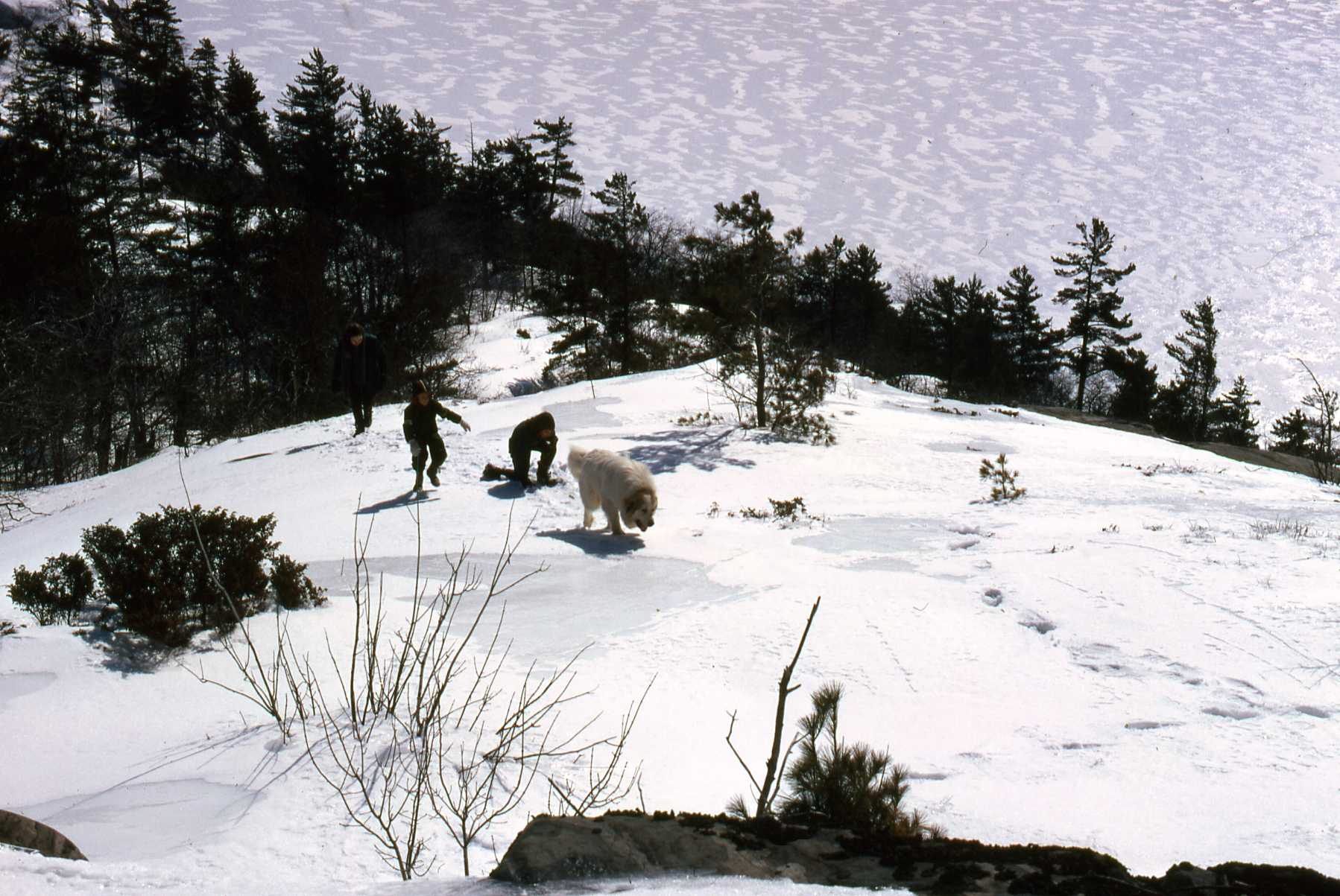 About two months later, I revisited Lake George with my wife, our young son and daughter and our Great Pyrenees dog Chibi.[4.] The days were warmer and longer. The snow was greatly diminished, but the lake was still frozen solid. We spent a night in the Killarney Inn. The photos below are from that visit.
