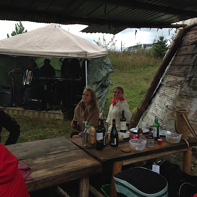 I’ve attended many of the Eigensinn Farm events as a musician. Usually I find a place for myself off the beaten track and discretely improvise dinner music. During one festival I played a drum beat behind a lovely waitress who marched amongst the diners holding cards aloft printed with the next courses. This year I was simply Michael’s guest. I think Michael has achieved the mantle of grand Pooh Bah. He invited his usual cohort of chef friends, but did not himself cook. For the first time I saw him strolling contentedly around the field snapping pictures and looking very relaxed. Nobuyo makes sure the guests and chefs are content.